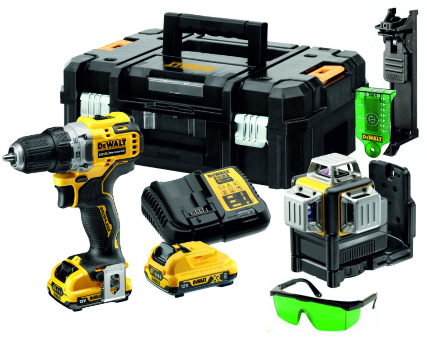 DeWalt DCK212D2T | Ensemble combiné | Perceuse/visseuse DCD701 + Laser multilignes auto-nivelant | 12V XR | 3x 360° | Vert | 2x 2.0Ah | dans coffret TSTAK – DCK212D2T-QW