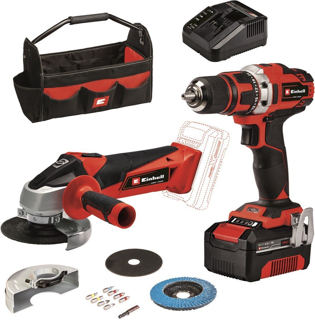 Einhell TE-TK 18/2 Li Kit 18 V/4.0 Ah (Perceuse-visseuse sans fil / Meuleuse d’angle sans fil) – 1 batterie – 4257240Einhell TE-TK 18/2 Li Kit 18 V/4.0 Ah (Perceuse-visseuse sans fil / Meuleuse d’angle sans fil) – 1 batterie – 4257240
