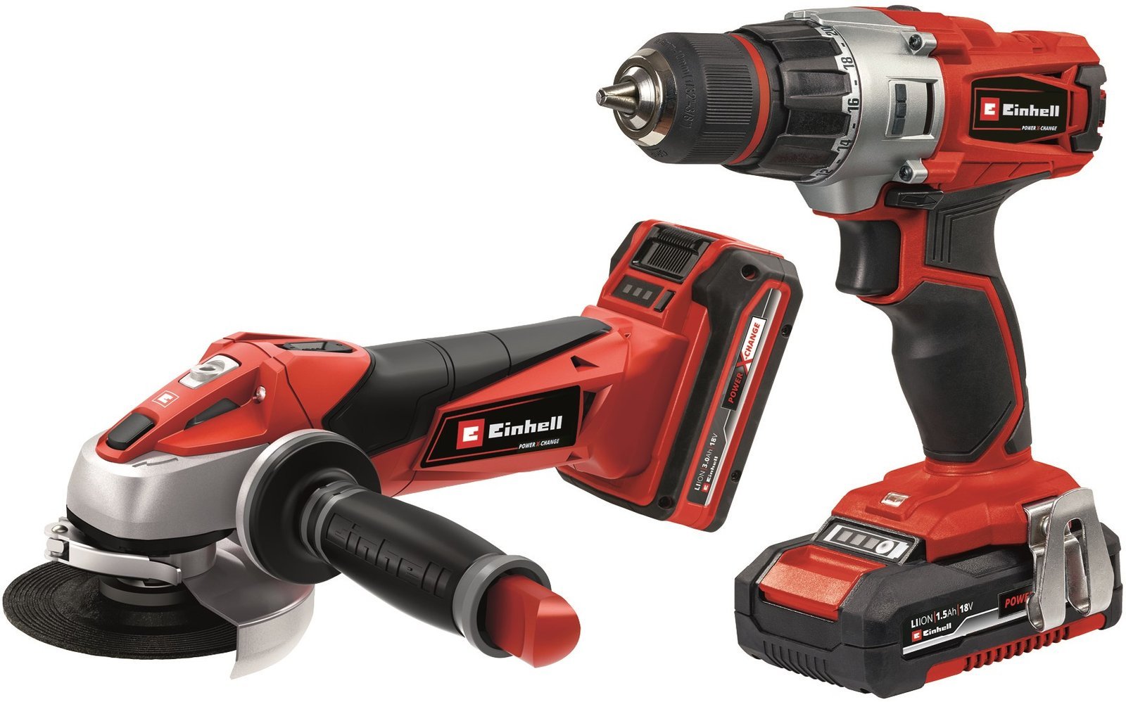Einhell TE-TK 18 Li Kit 18 V / 1,5 Ah / 3,0 Ah (Perceuse-visseuse sans fil / Meuleuse d’angle sans fil) – 2 batteriesEinhell TE-TK 18 Li Kit 18 V / 1,5 Ah / 3,0 Ah (Perceuse-visseuse sans fil / Meuleuse d’angle sans fil) – 2 batteries