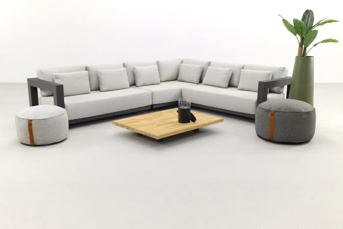 Le salon de jardin New York allie élégance et confort grâce à sa structure robuste en aluminium et ses coussins moelleux dans une teinte gris clair moderne. Le grand canapé d’angle, doté d’accoudoirs larges, offre un espace généreux pour accueillir toute la famille ou des amis. Associé à une table basse en bois, cet ensemble devient le point central idéal de votre terrasse ou jardin.