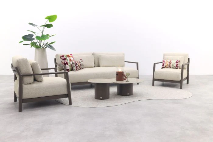 Le salon de jardin Oman incarne le confort et l’élégance contemporaine. Composé d’un canapé deux places, de deux larges fauteuils et de deux tables assorties aux formes arrondies, cet ensemble dégage une allure moderne et raffinée. Les coussins épais dans des tons beige doux offrent une assise agréable et invitent à la détente, que ce soit sur la terrasse ou dans le jardin.