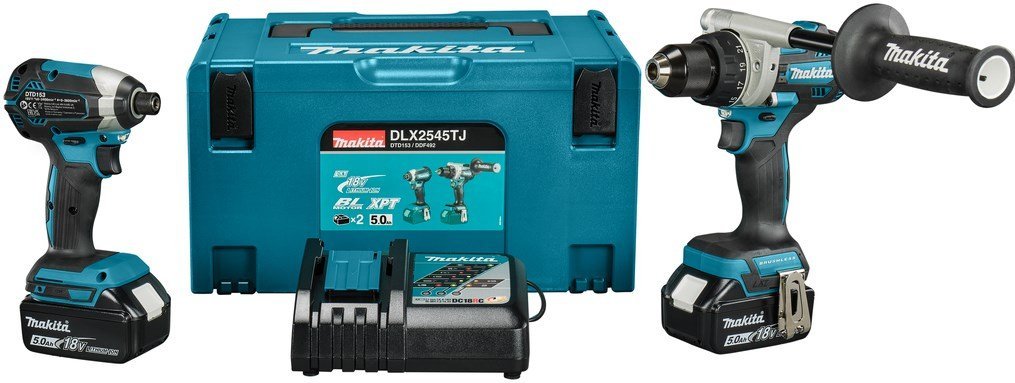 Makita DLX2545TJ 18V Coffret combiné DDF492 Perceuse-visseuse + DTD153 Visseuse à chocs (2x 5.0Ah et chargeur) dans Mbox – DLX2545TJ