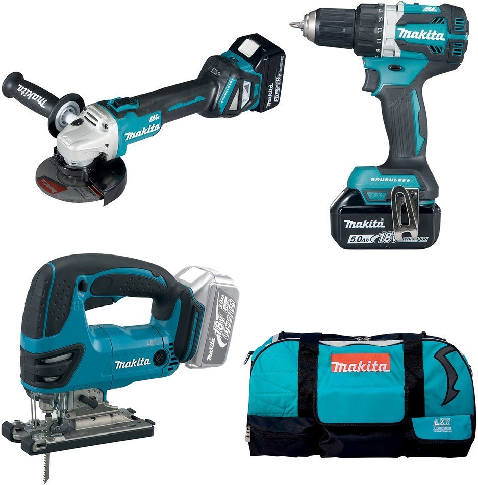 Makita DLX3152TX1 | DDF484 Perceuse-visseuse sans fil + DJV180 Scie sauteuse sans fil + DGA511Z Meuleuse d’angle | 18v 5.0Ah Li-ion