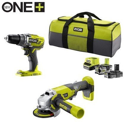 Ryobi R18DDAG-252S | ONE+ 18V Kit combiné sans fil 2 pièces | Inclus 2 batteries et chargeur 5133003819