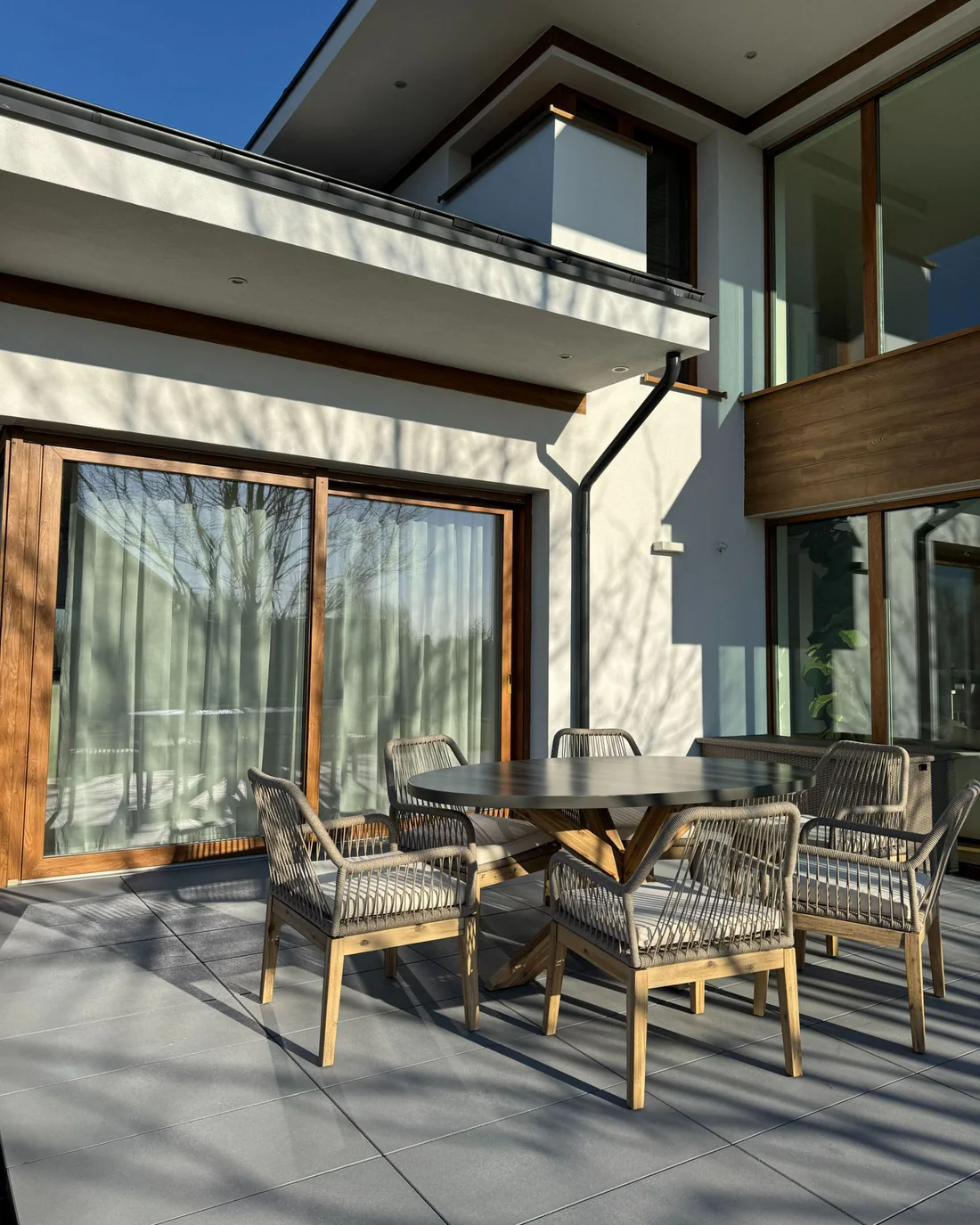 Cet ensemble apporte une touche raffinée à tout espace extérieur et est parfait pour de longs repas conviviaux ou des moments de détente au soleil.